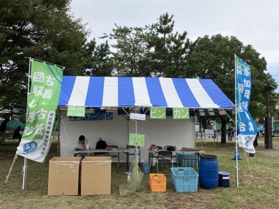 草加ふささら祭りではエコステーションの運営、商工会議所祭りでは古紙と古着の回収を実施しました。